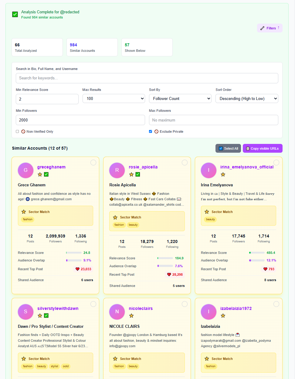 Discover similar accounts and potential engagement opportunities with our advanced audience analysis tool, no Instagram account required
